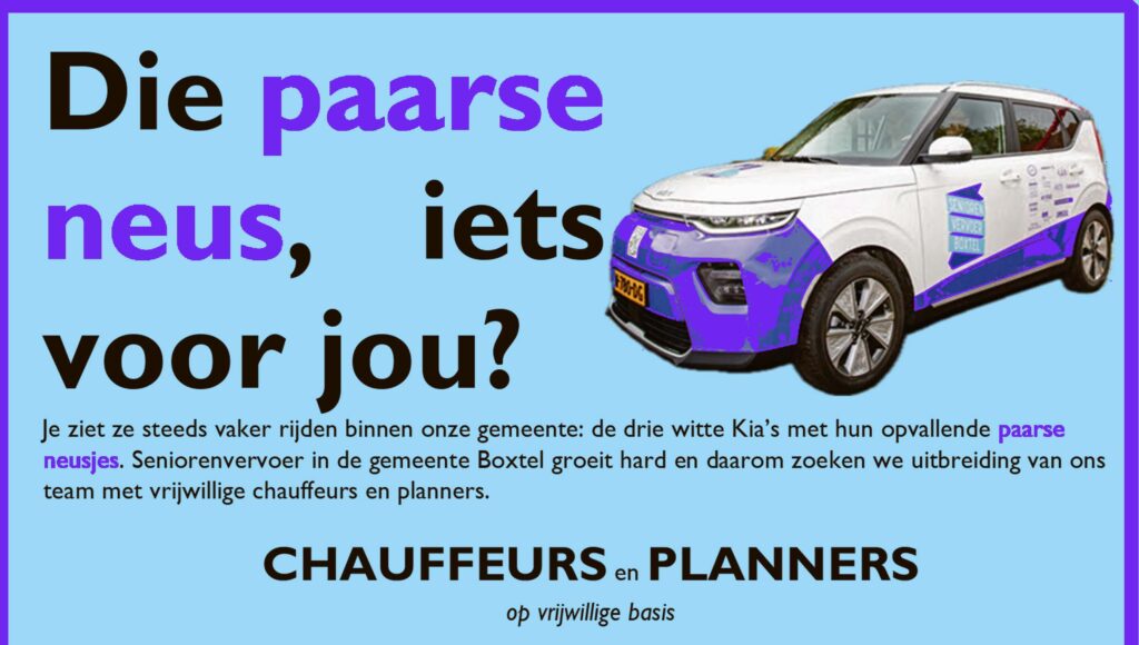 U kunt het niet verzinnen of we komen er wel met ons seniorenvervoer. We rijden in Boxtel, Lennisheuvel, Esch, Liempde en Gemonde.